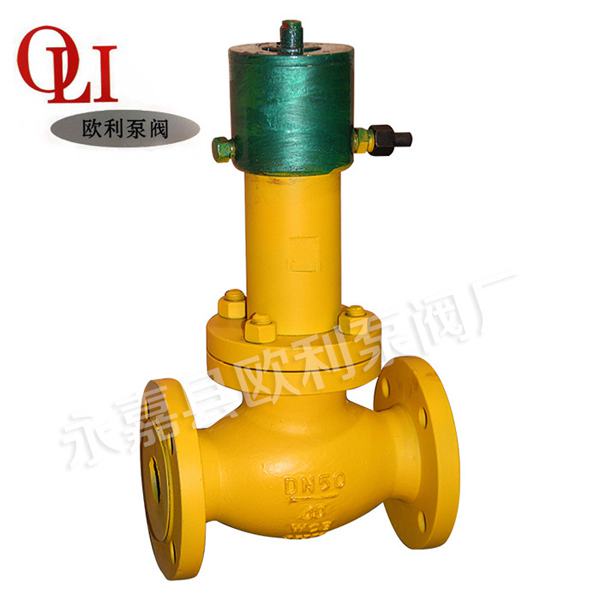 Hydraulic emergency cut off valve is a safety protective valve, installed in the liquefied petroleum gas storage station, liquid and gas pipeline, and long-distance hand pump(type SB03-175) supporting the use, the use of hydraulic control valve open close, so that produce large leak even fire in a pipe or tank, fast hand to hand pump discharge pressure, high temperature or the fusible alloy melt, and the valve cylinder automatic pressure relief, rapid closure of the valve and the leakage stopping, play the role of security protection.
